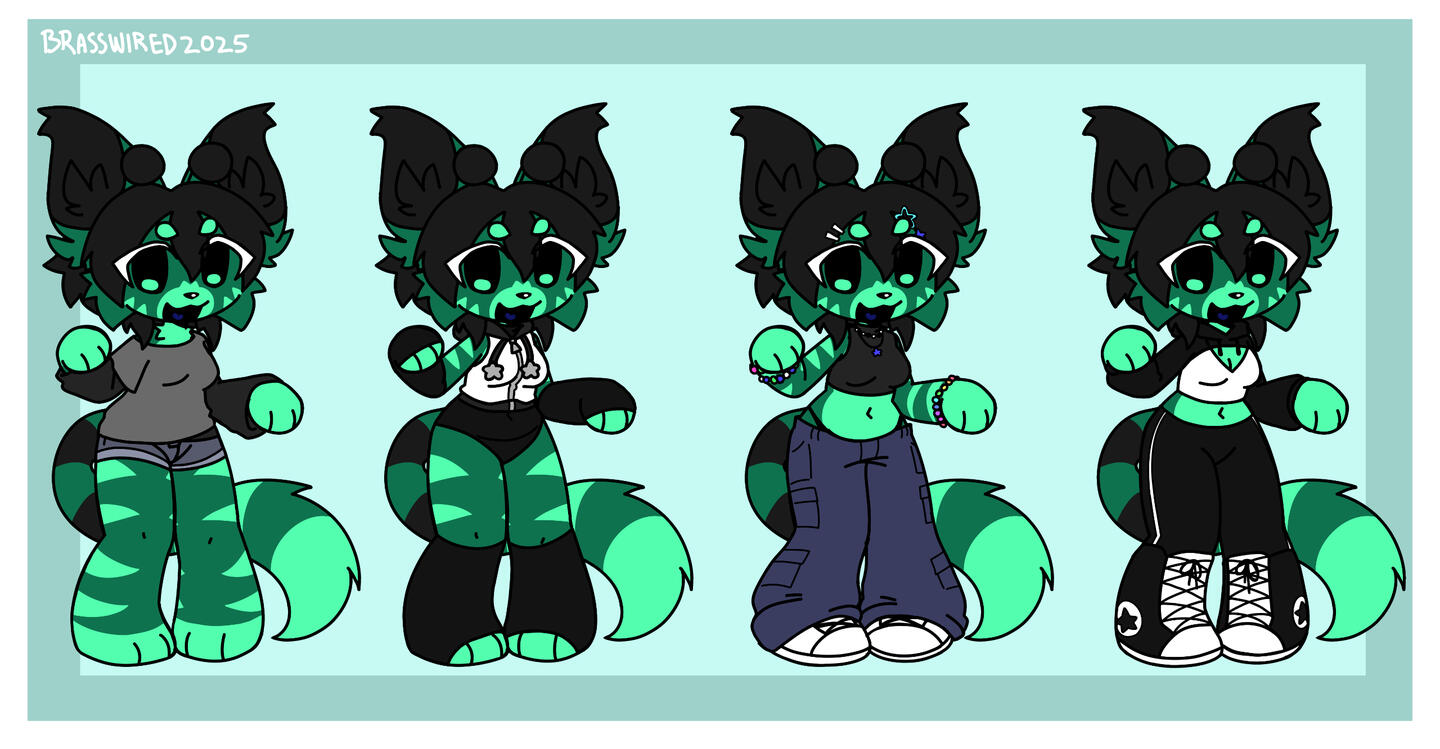 Character Inspos: Callie (Splatoon), Ibuki Mioda (Danganronpa), KAngel (Needy Streamer Overload), Hatsune Miku, DJ Jamsta Sonichu (Sonichu (my version which is better)), ENA (ENA)Music Inspos: Rainbow Tylenol by Kitsune^2, S3RL, Rave/EDM, Speedcore, 2000s Nightcore/Electronic, Music by Chirpy Chirps + Squid Sisters + Off the Hook (Splatoon), Glitchcore/HyperpopFavored Aesthetics/Fashion: Kandi Raver, Scene, Glitchcore, 2000s/2010s Internet Nostalgia, Frutiger Aero