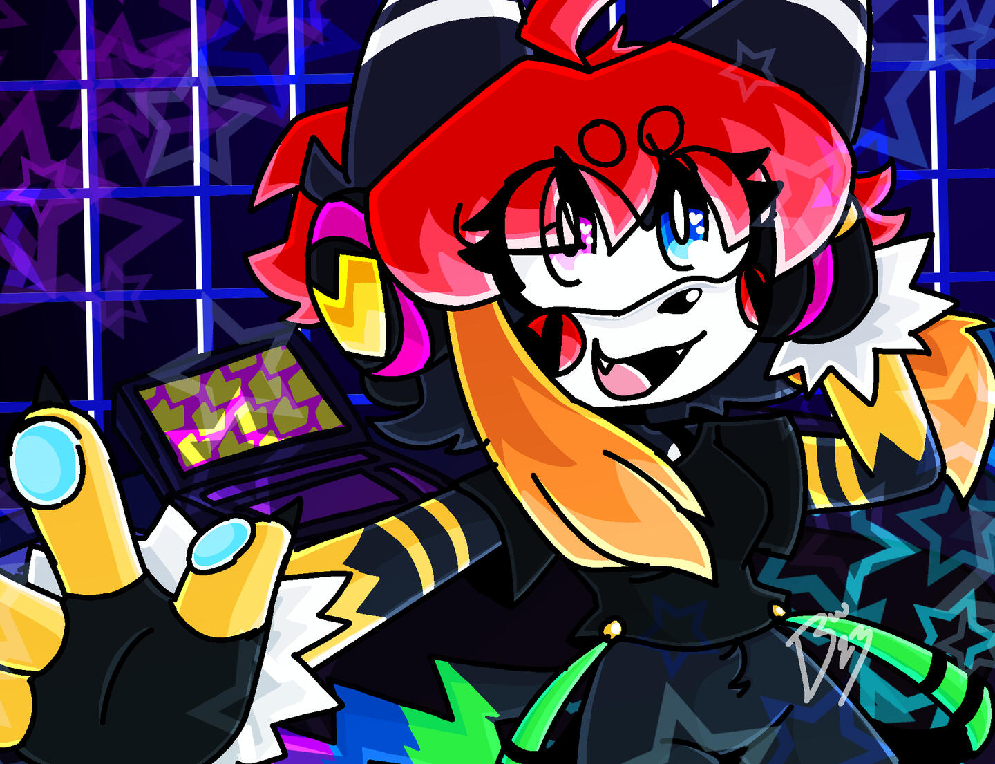 Tylechu is an ageless genderless Sonichu, God Fusion, and Demigod DJ residing somewhere in Spiralspace, usually seen avoiding her godly duties and having frequent raves/nights on the town! She’s extremely outgoing and makes friends with almost everyone she meets, but that doesn’t mean she’s not lonely and yearning for that sweet sense of belonging constantly. She loves tinkering with abandoned tech and travelling around the largely unexplored Voidspace.
