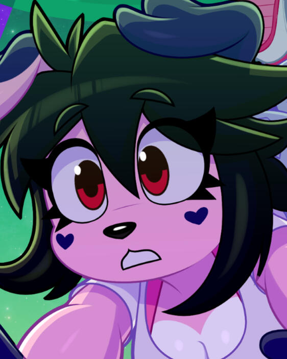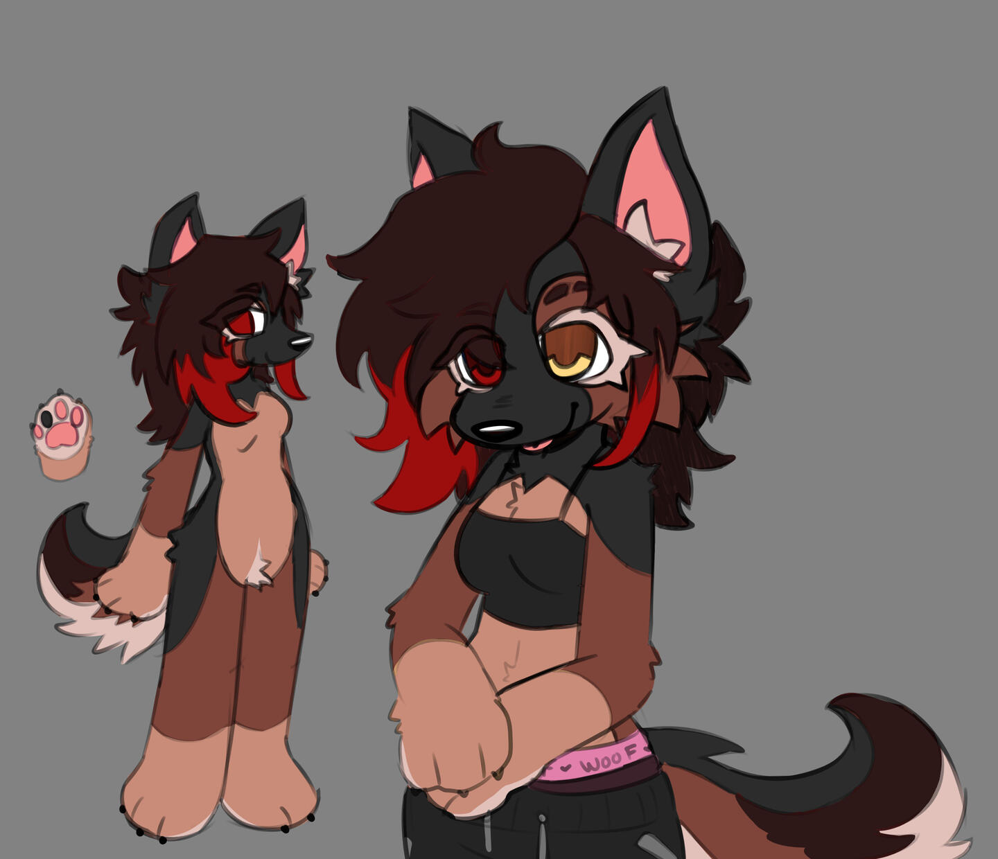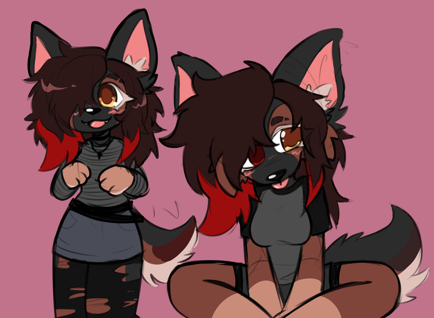She's a german shepherd emo puppygirl living in the same town and time as Bep (California circa 2006). She plays guitar and ukulele, loves alternative/pop punk/rock/metal music and cool cars, and partakes in escapism as often as she can. Growing up idolizing law enforcement only to become an adult and realize just how corrupt the system really is, her current goal in life is to find a way to make a difference... after she gets out of her depressive episodes.